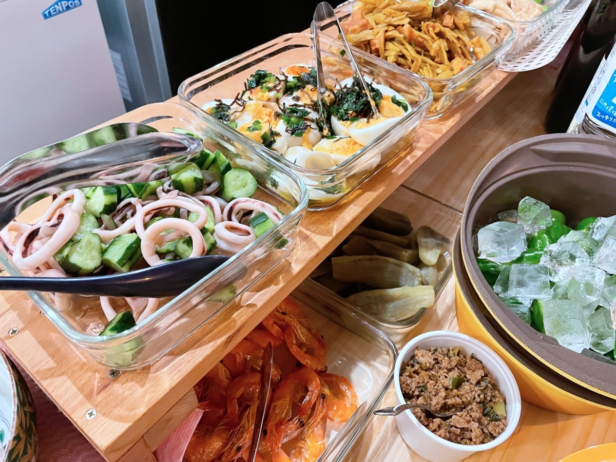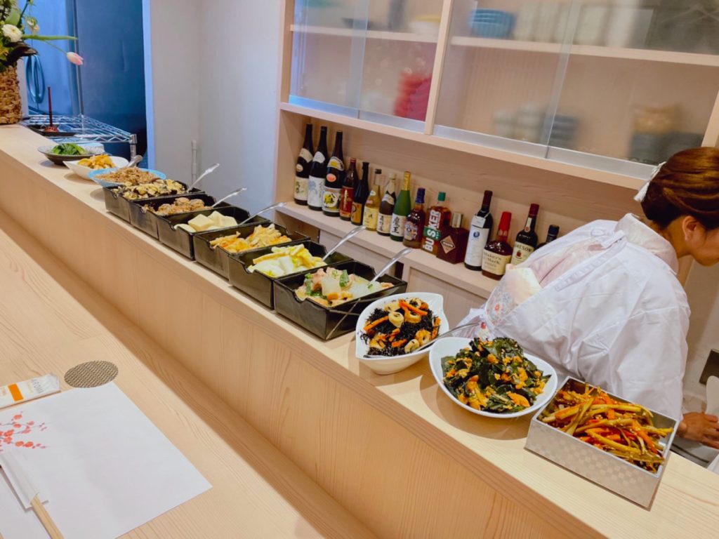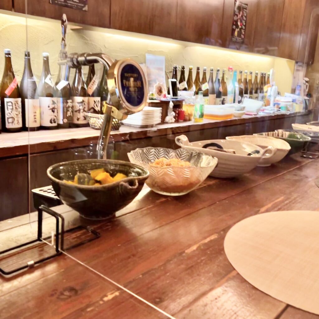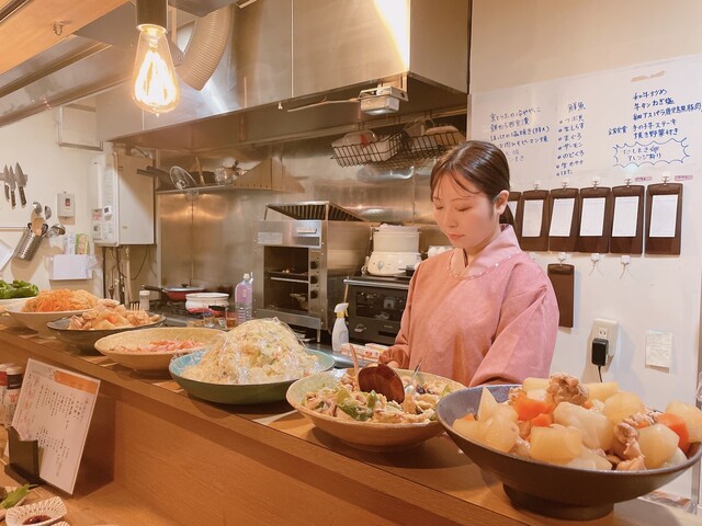 おばんざいがカウンターに並び夜でも食事が楽しめるはんなりlade。