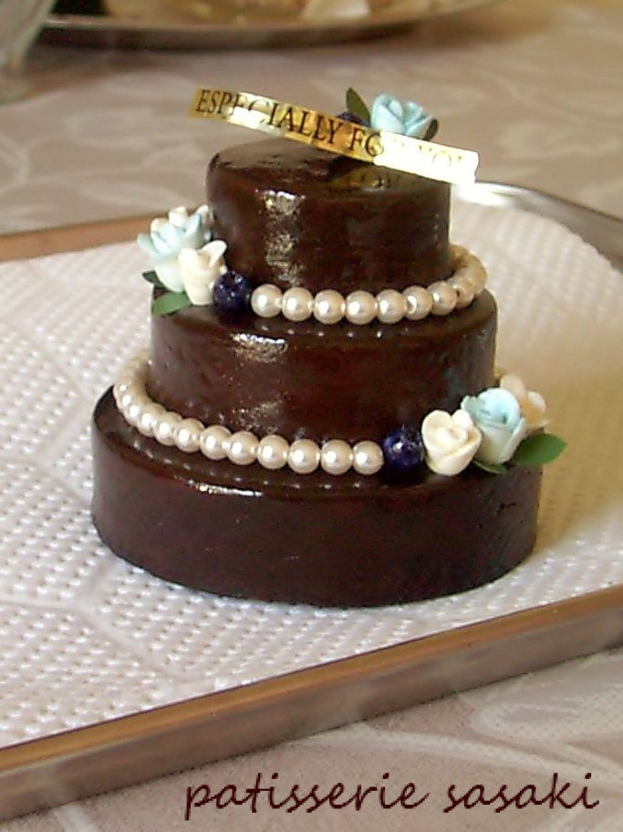 3段ミニチョコケーキ フェイク: 洋菓子本店 sasaki。