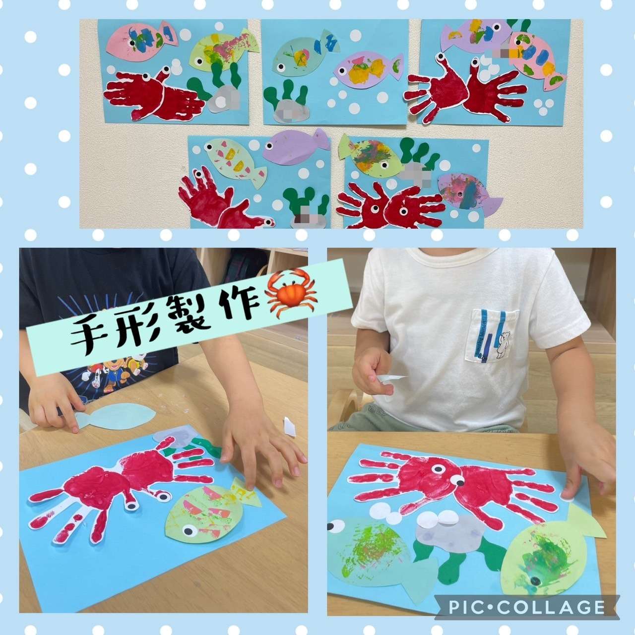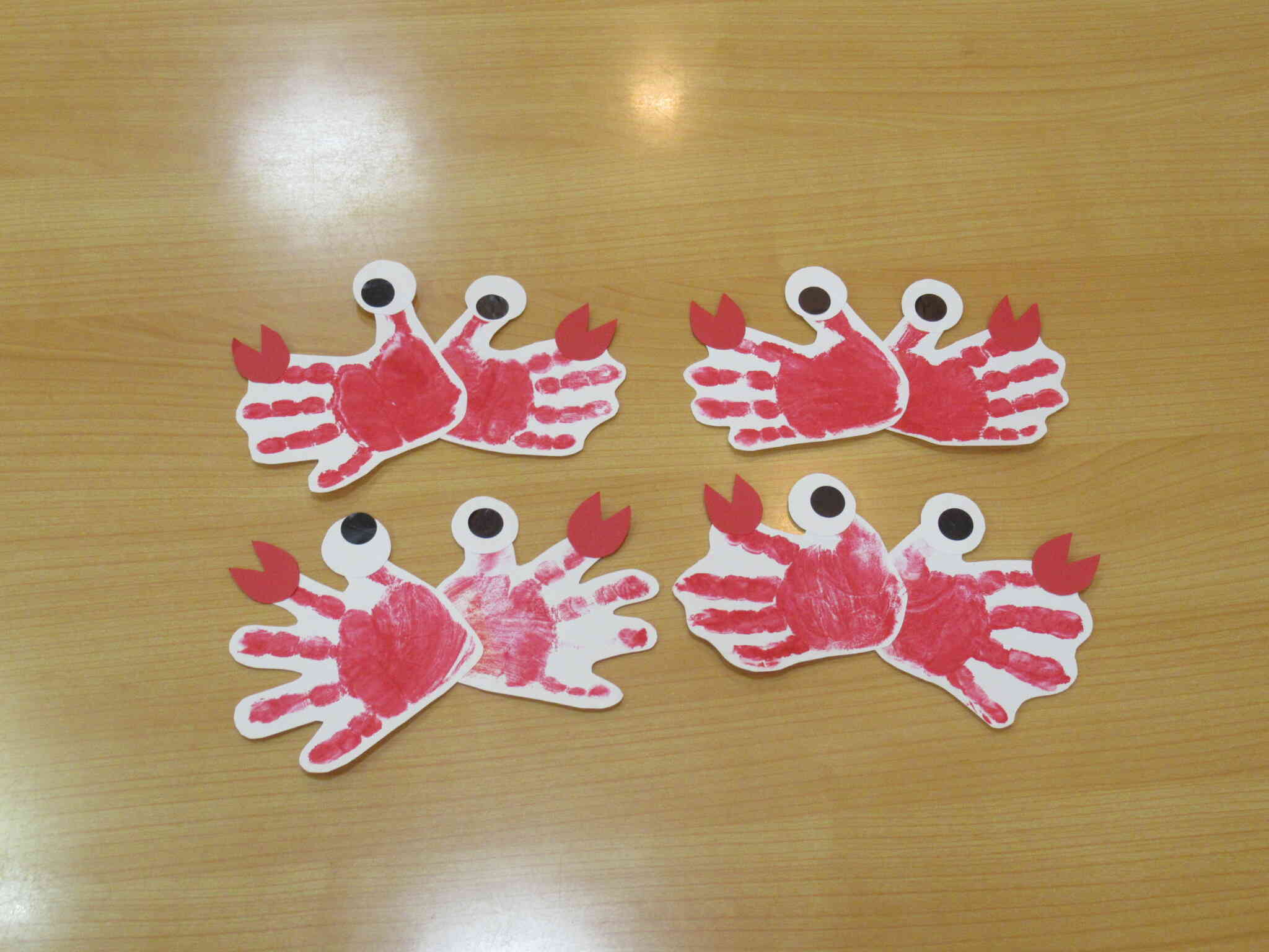 8月製作 手形でカニさん製作 保育園・幼稚園・こども園- ほいくのおまもり。