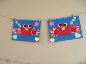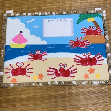 製作キット保育 壁面カニ 壁面夏 壁面7月 壁面8月 保育 壁面 手形。