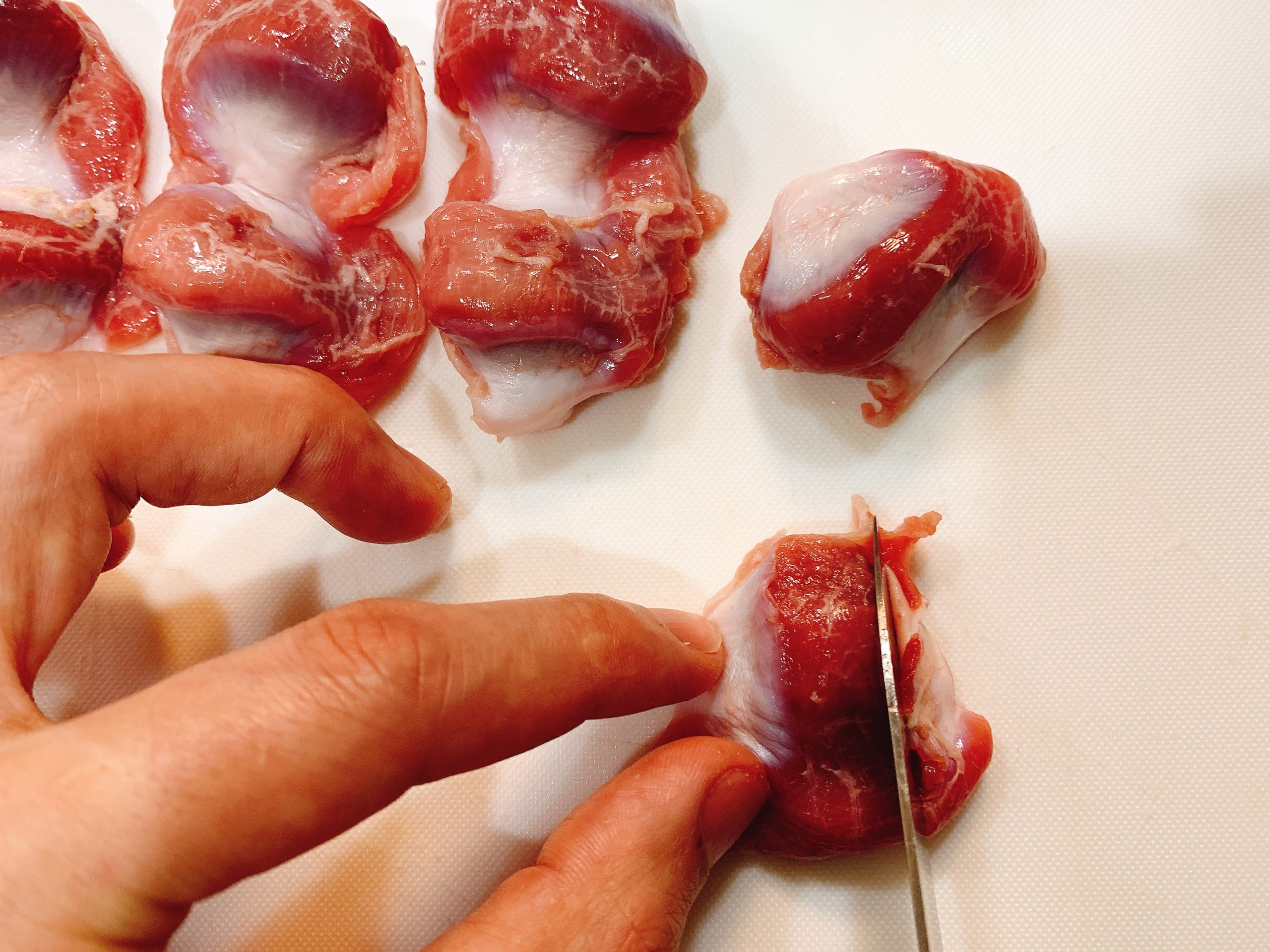 ひと目でわかる砂肝 砂ずり 下処理方法・銀皮の剥ぎ方・銀皮レシピ老いない薬膳ごはん。