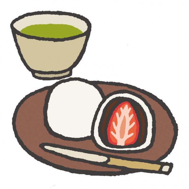 手描き水彩風 いちご大福とイチゴ柄の湯飲みに入った緑茶のイラストのイラスト素材73049852- PIXTA。
