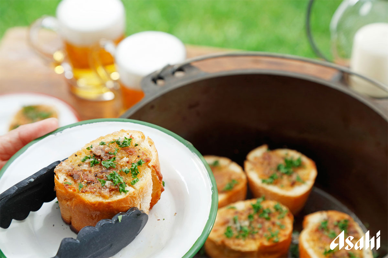 フランスパンのレシピズバうま!おつまみレシピアサヒビール。