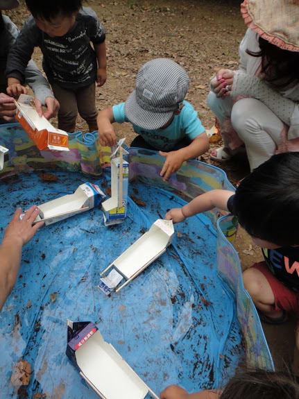 牛乳パックで船を作ろう公園、工作、子連れで遊ぼう。