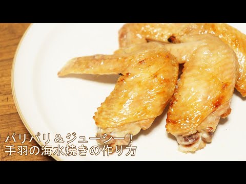 簡単!塩味絶妙パリパリ手羽元の海水焼き。