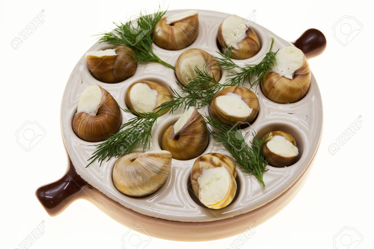 エスカルゴ バターとフライパン、カタツムリのフランス語の繊細さのスパイスの写真素材・画像素材 Image 79625992。