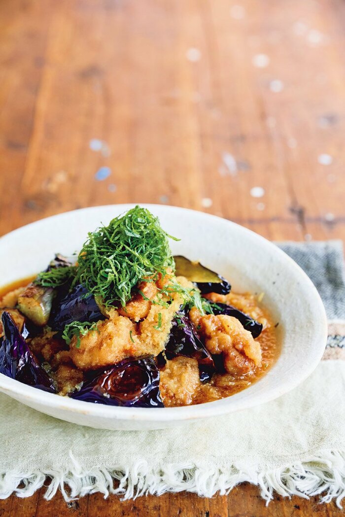 山本ゆり syunkon レンジは600Won X: "② だし唐揚げ ※おすすめ 鶏もも肉250gを一口大に切ってフォークで穴を開けまくり、だし醤油大さじ1を揉み込んで15分おき、片栗粉をまぶしてナスとともに揚げる。お皿に盛り、だし醤油をナス中心にたらすめんつゆ濃縮4倍なら。