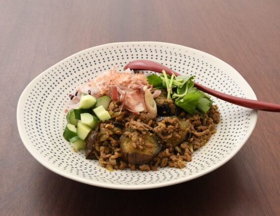だししょうゆorめんつゆ1本だけレシピ 鶏とナスのから揚げ、豆腐のひき肉きのこあん、サラダ。