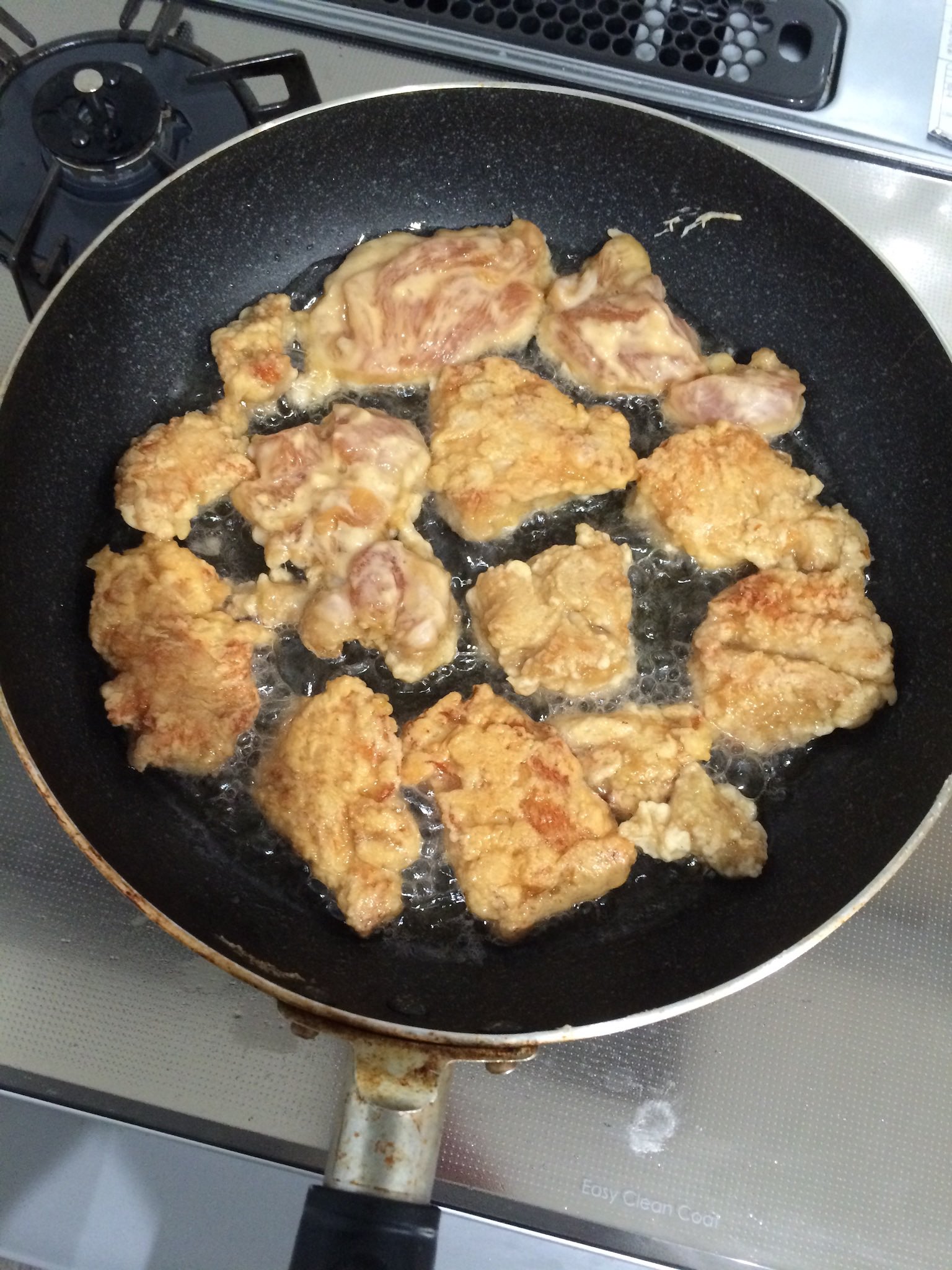 簡単! 普通の鶏のからあげ 揚げ焼きでもサクサクに、かつはねない方法。