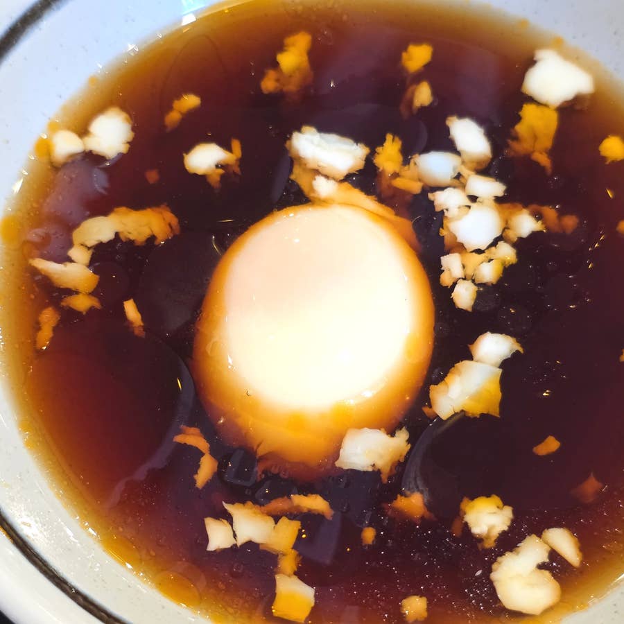 白だしと醤油を混ぜるだけ、美味しいかけ汁完成!丸亀製麺の、とろ玉うどんをお家で。