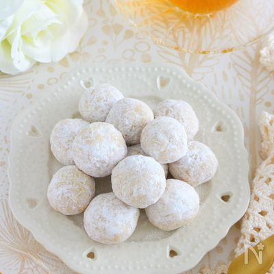 材料3つ!さくほろ片栗粉でスノーボールクッキーのトースターで簡単レシピ。小麦粉なしバターなしでポリ袋で作れます! - つくりおき食堂。