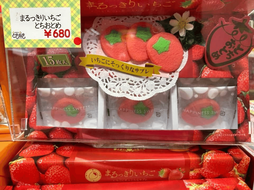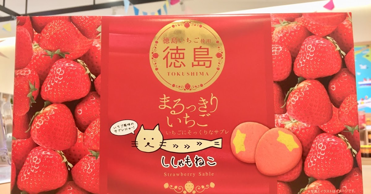 おはようございます! 本日は「まるっきりいちご徳島」をご紹介いたします。 こちらの商品は、徳島いちごを使用しています。 いちごにそっくりなサブレは個包装で18枚入りです。ぜひ、お土産にいかがでしょうか。