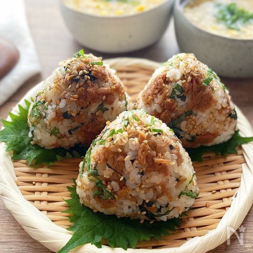 子供も大人も大好きな味!甘辛ツナマヨと大葉のおにぎり。