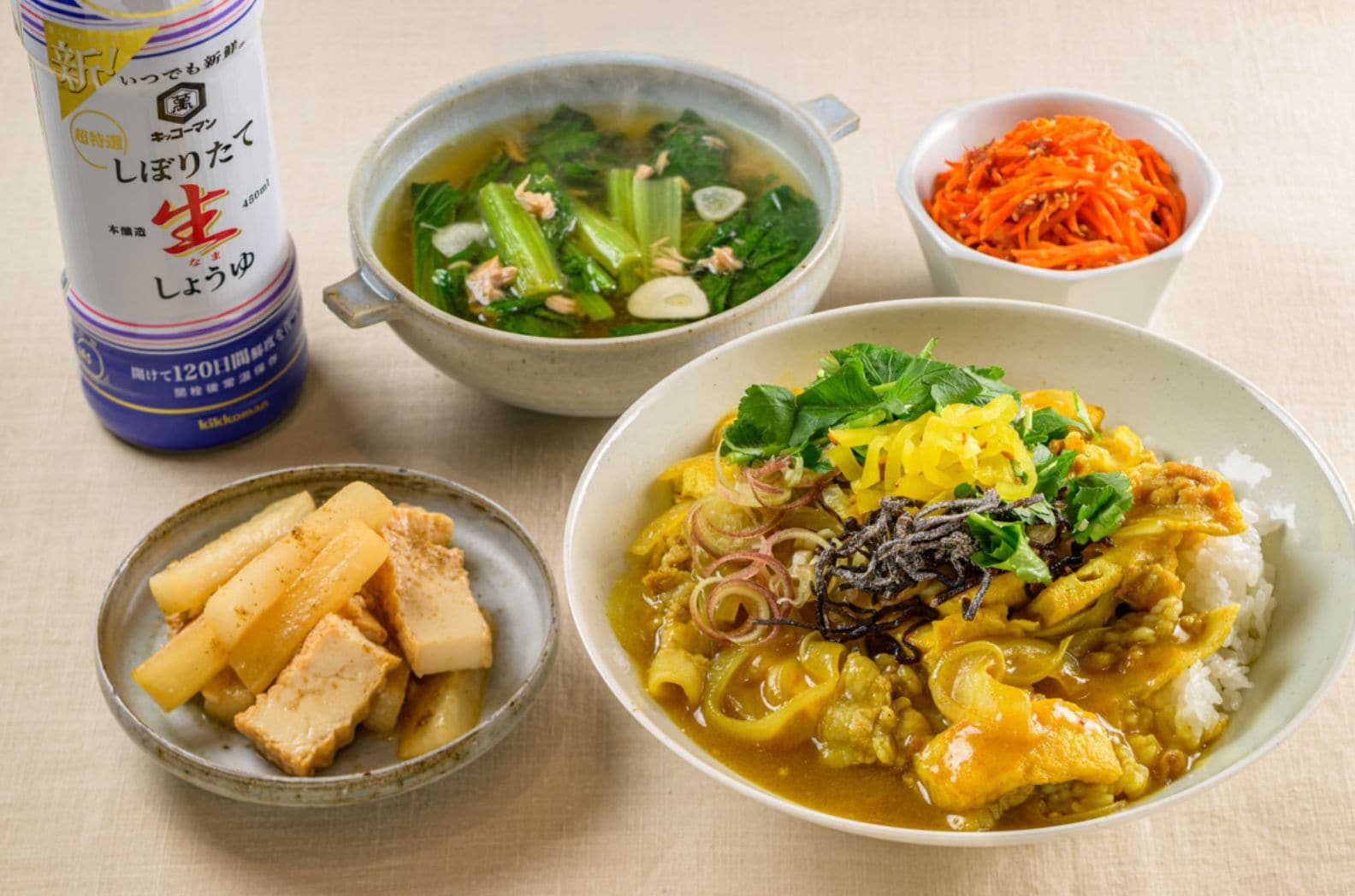 油揚げのしょうゆカレーは必食! 長谷川あかりさんの自炊応援レシピ4品キッコーマンホームクッキング。