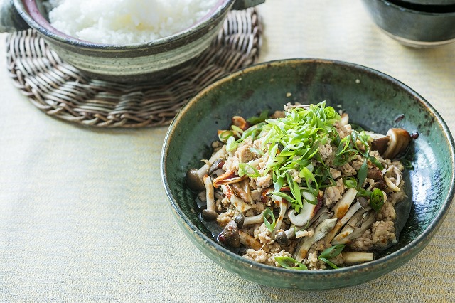 焼ききのことしっとり鶏そぼろ。