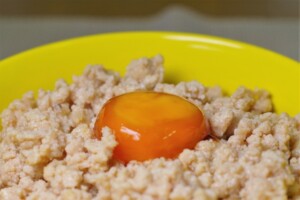 鶏そぼろ丼温泉卵のせレシピ 作り方しっとりパラパラ・甘辛。