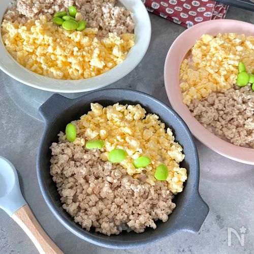 しっとりそぼろの三色丼 簡単絶品。