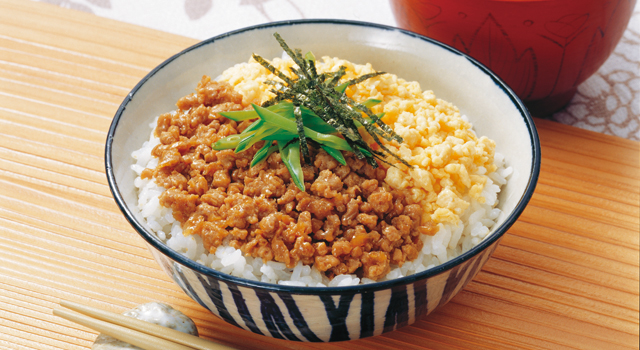 「キューピー3分クッキング」しっとり鶏そぼろ丼。