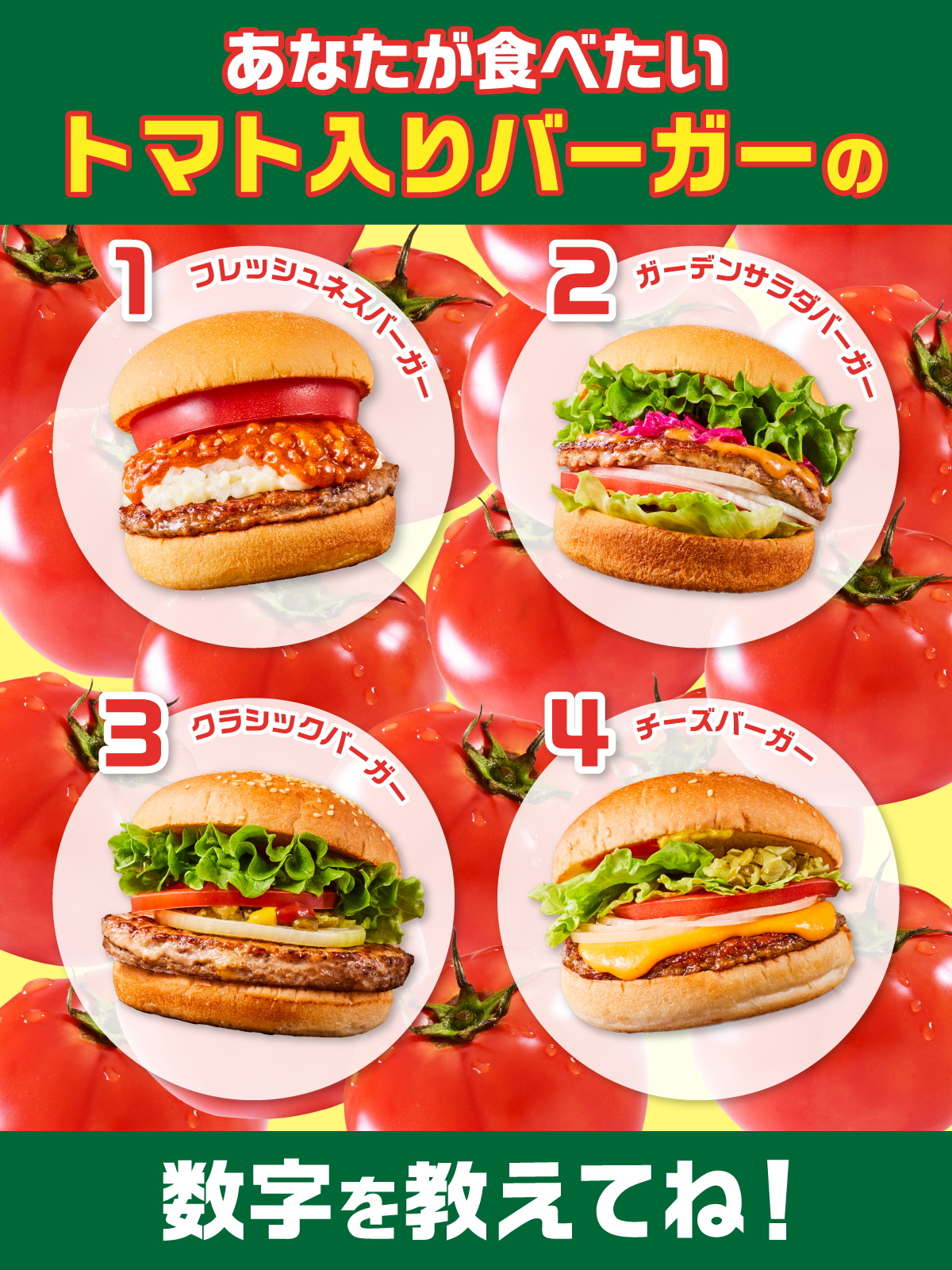フレッシュネスバーガー 公式on X: "フレッシュネスバーガーの 国産生トマトを使ったバーガーたちをご紹介🍅 食べたいバーガーを番号で教えてね!https:t.co zT64pEoZD0"X。