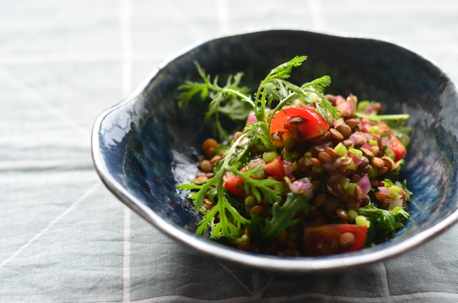 レンズ豆とひよこ豆のマリネサラダ。