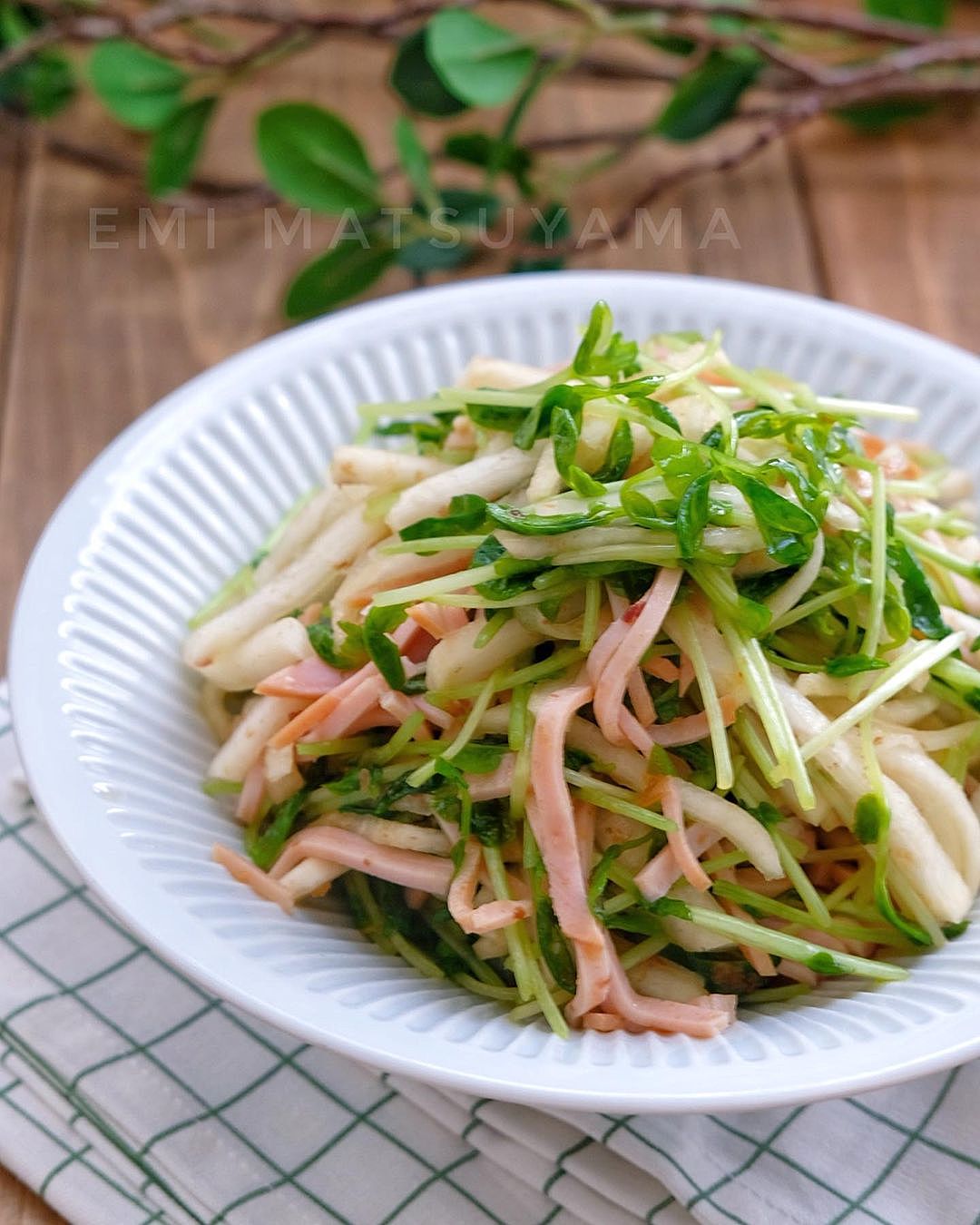 ポリ袋で簡単!*豆苗と大根とハムのおかかマリネサラダ*。