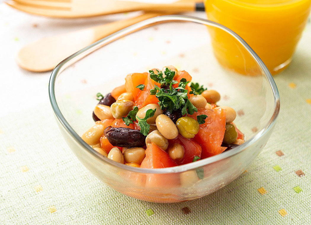 トマトとお豆のマリネサラダ 管理栄養士レシピ かんたんレシピみっくすなっつ アイチョイスのWEBマガジン。