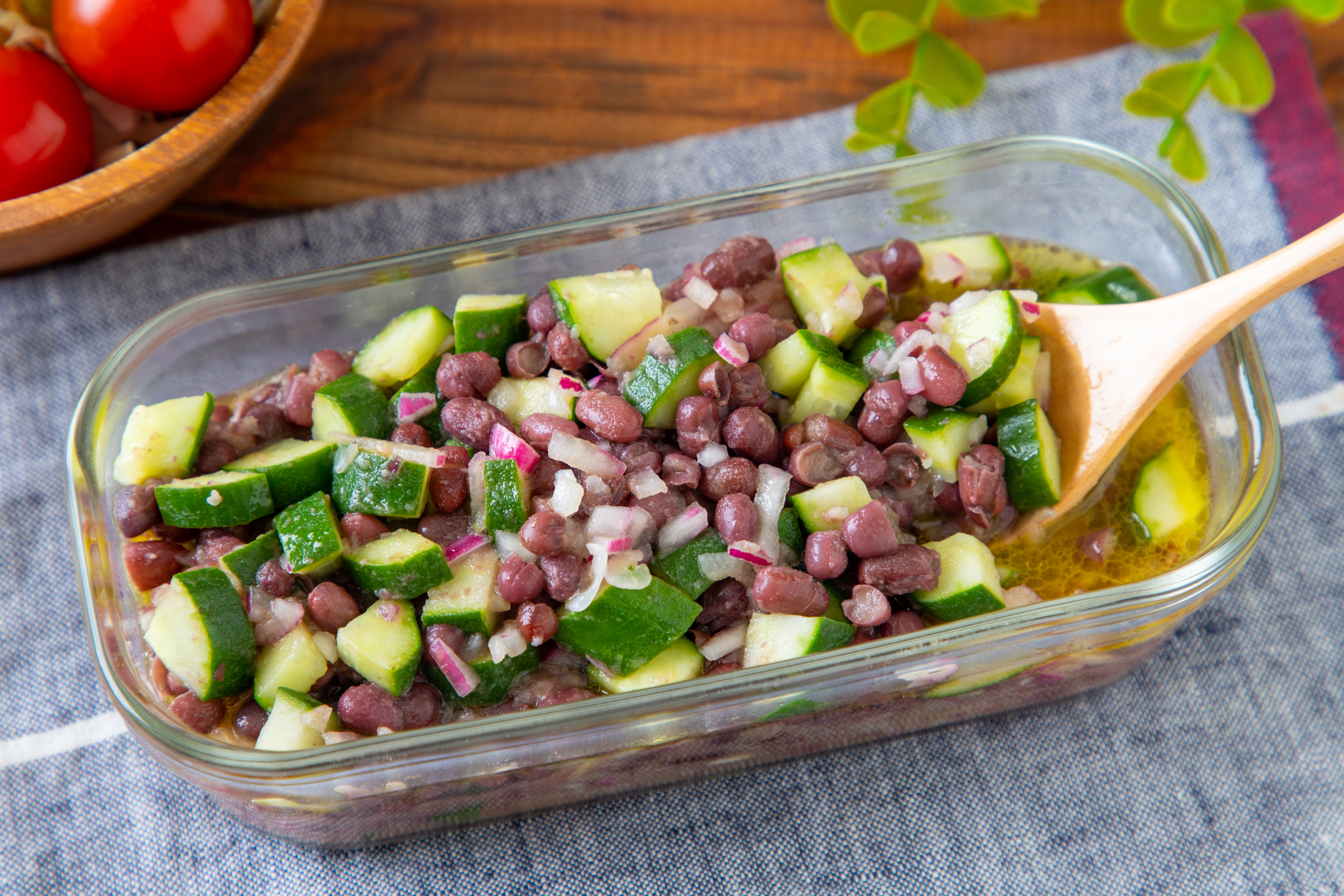 ミックスビーンズときゅうりのマリネサラダ。