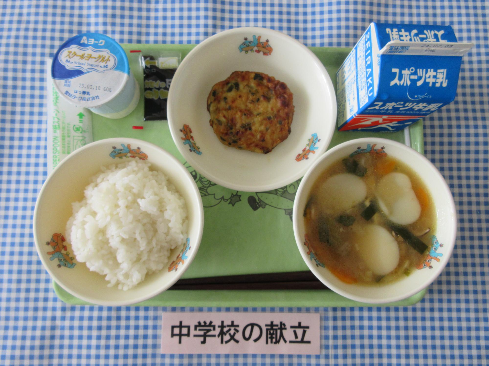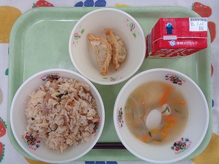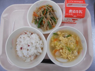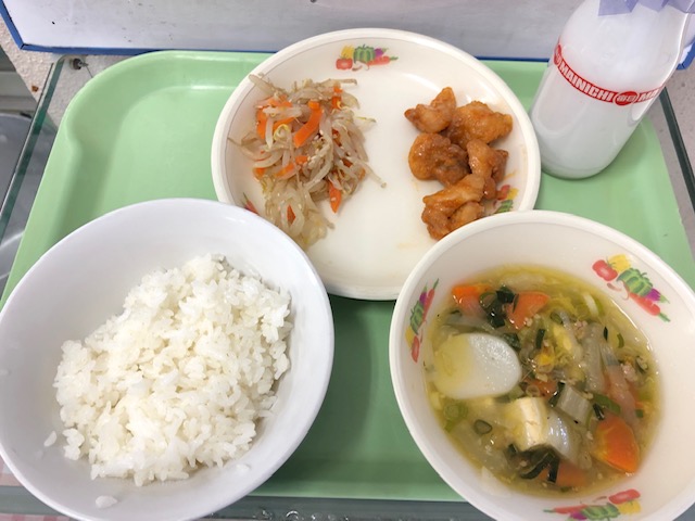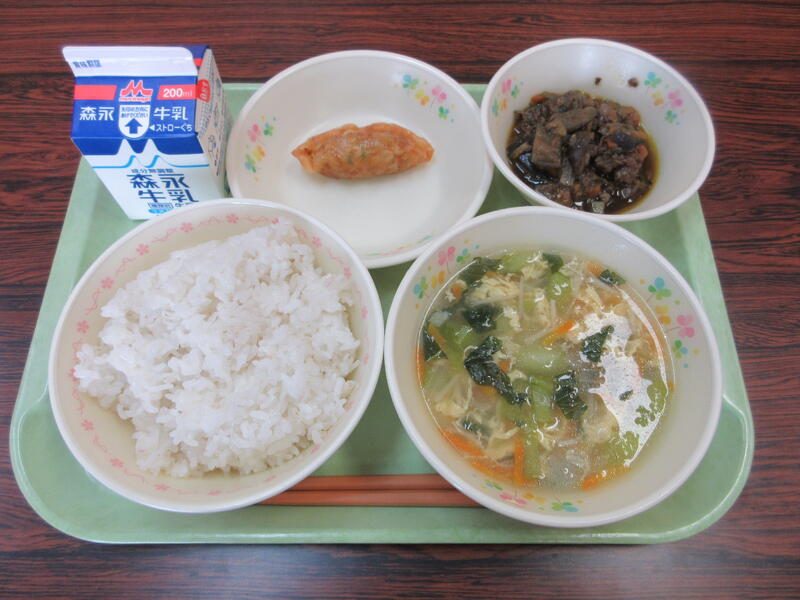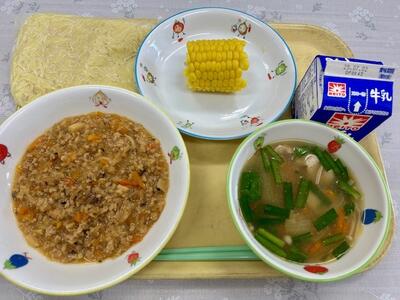 江戸川区立中小岩小学校学校日記トックスープと小松菜チャーハン。
