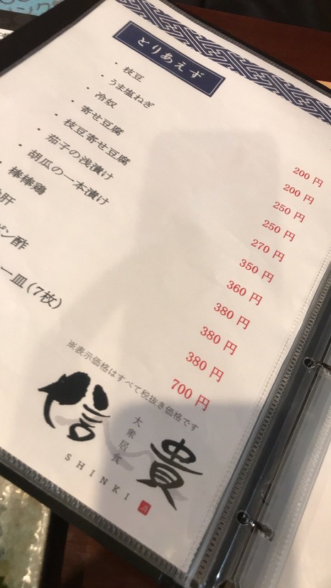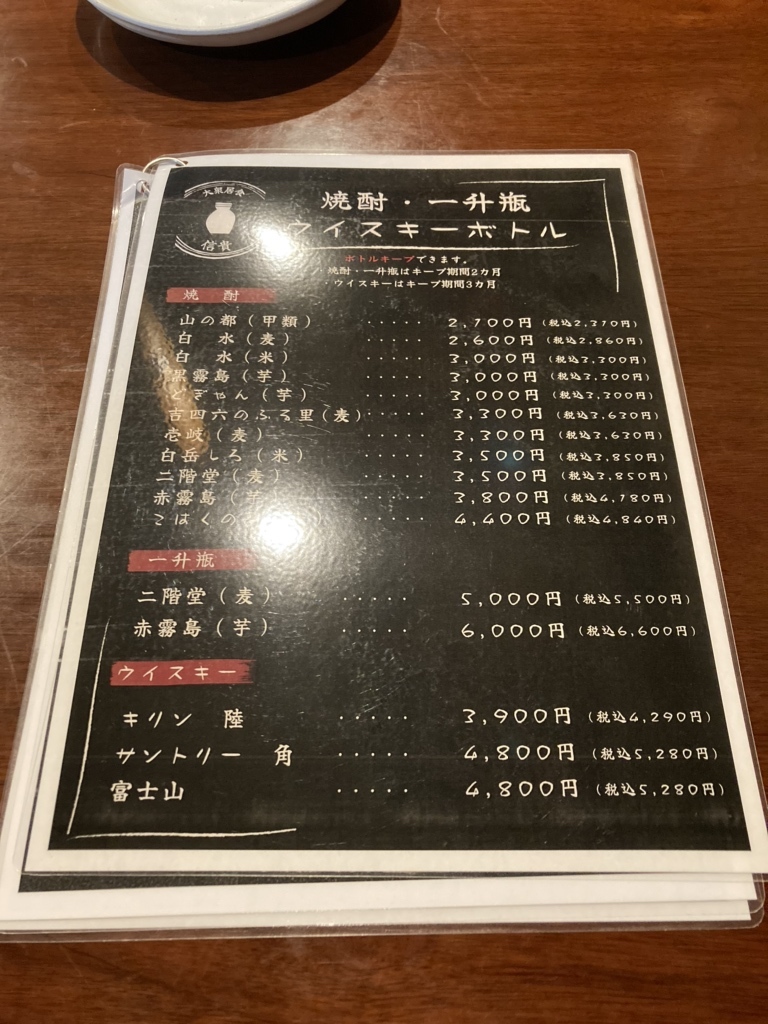 大衆居食 信貴 甲府 居酒屋 のメニュー表写真ヒトサラ。