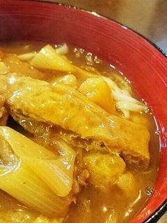 残ったカレーと市販の蕎麦つゆで作る「簡単和風カレー丼」&厚揚げ焼きを美味しく焼こう : SAKE TO RYOURI Powered byライブドアブログ。