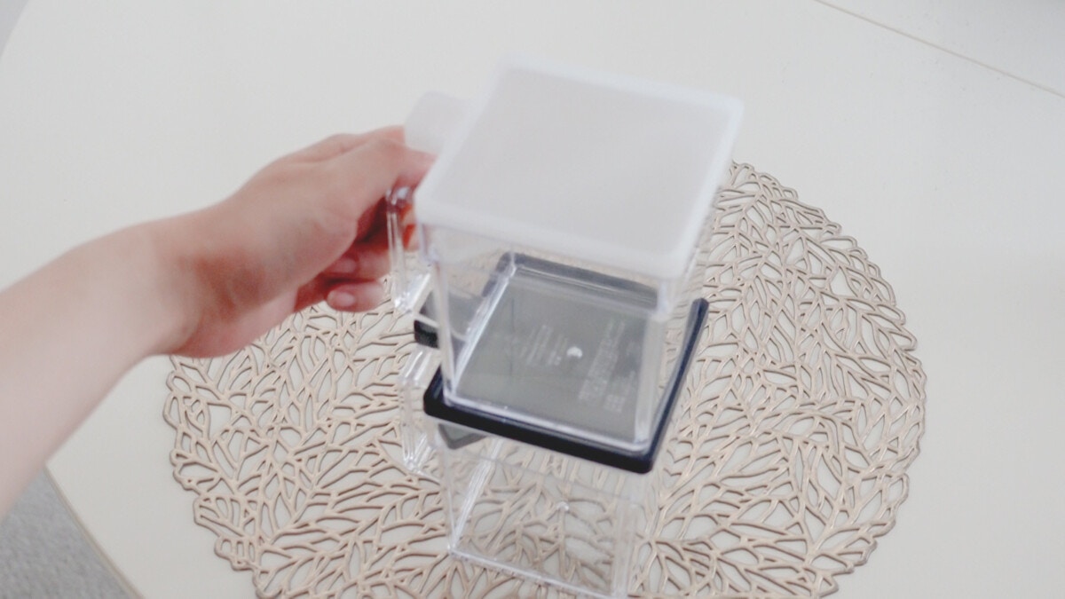 セリア スクエアポットが調味料の保管に◎片手で開閉可なところが良い!ママリ。