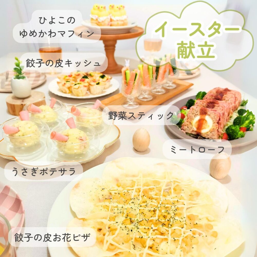 イースターパーティーに☆簡単可愛い6レシピ!餃子の皮で作るピザとキッシュなど行事食百花。