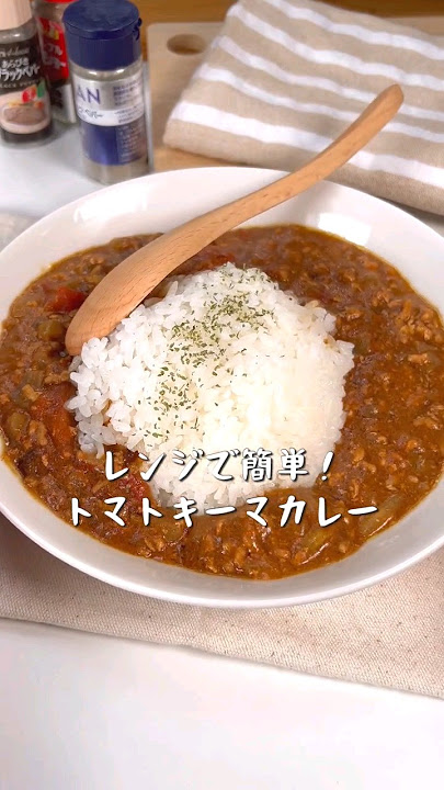 リュウジ@料理のおじさんバズレシピ on X: "これ、マジで毎日食べたいくらい楽で旨い!レンジ無水キーマカレー耐熱容器にひき肉、タマネギ、 トマト缶、ニンニクと調味料、カレールウなど材料すべて入れて600w12分チンするだけ 水は使わず作るのでうま味がはんぱない。