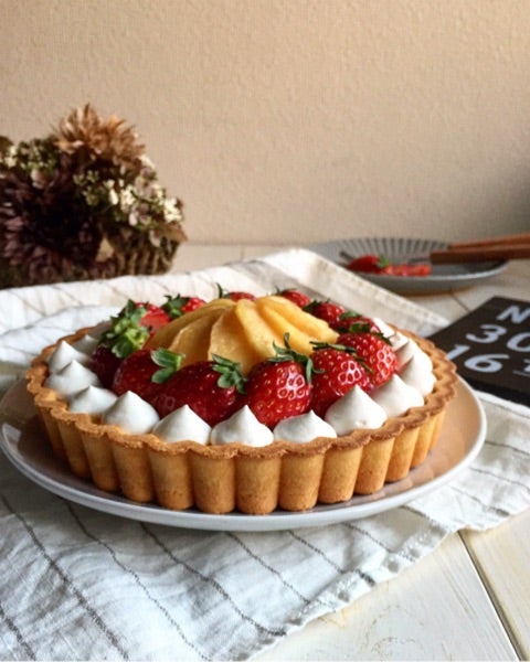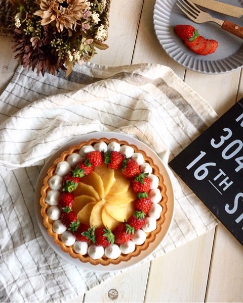 いちごとシナモン香る♪りんごのカスタードタルト♪とデコレーション長田知恵 つき 料理研究家。