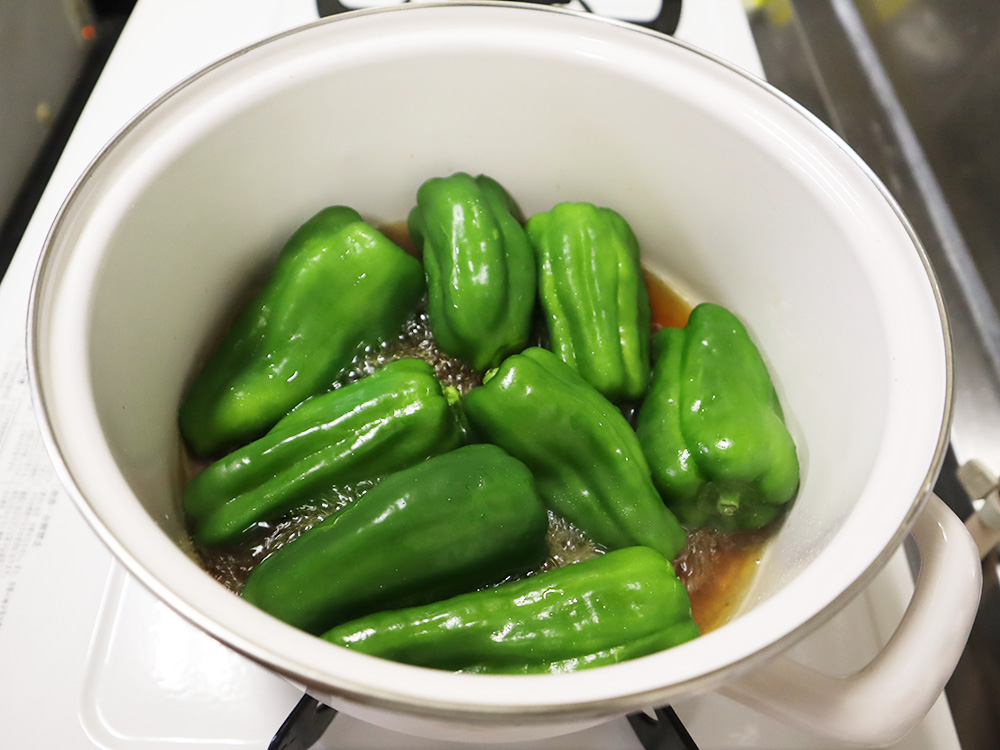 包丁不要! 丸ごとピーマンのレンジ煮浸し。
