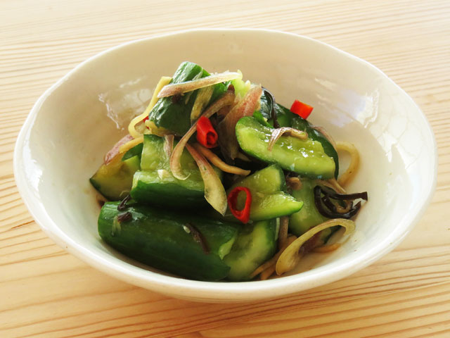 ささっと作れる! きゅうりとみょうがの塩昆布漬け。