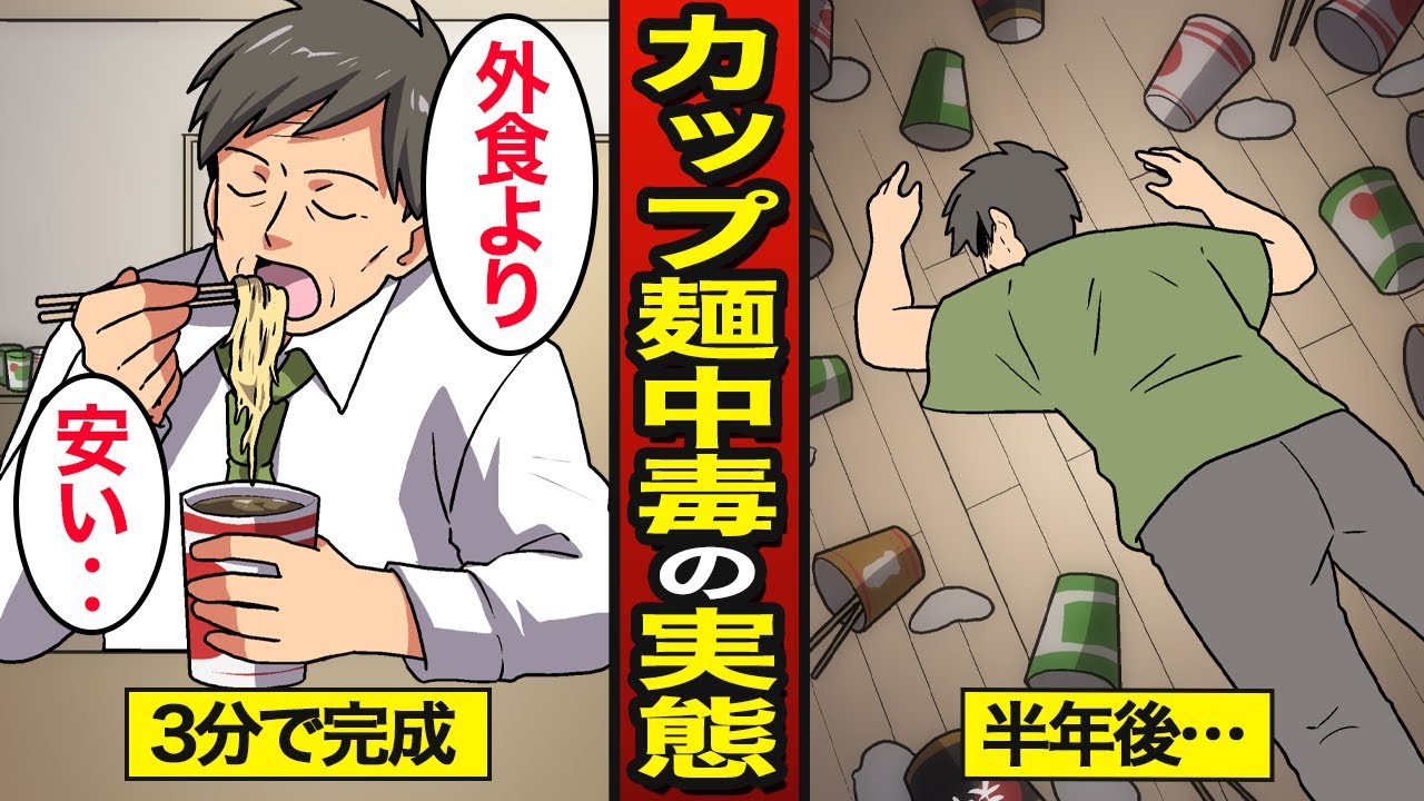 実録 カップラーメン依存症の末路‥年間1000種の新商品‥1人40個 年は食べる国民食だが‥食べ過ぎた男に異変が‥その理由とは? 漫画マンガ動画- YouTube。