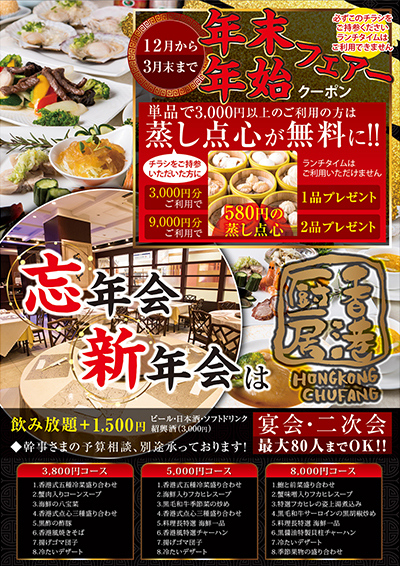 2019年の忘年会・2020年の新年会用チラシを作りました!扇町和庵 青空。