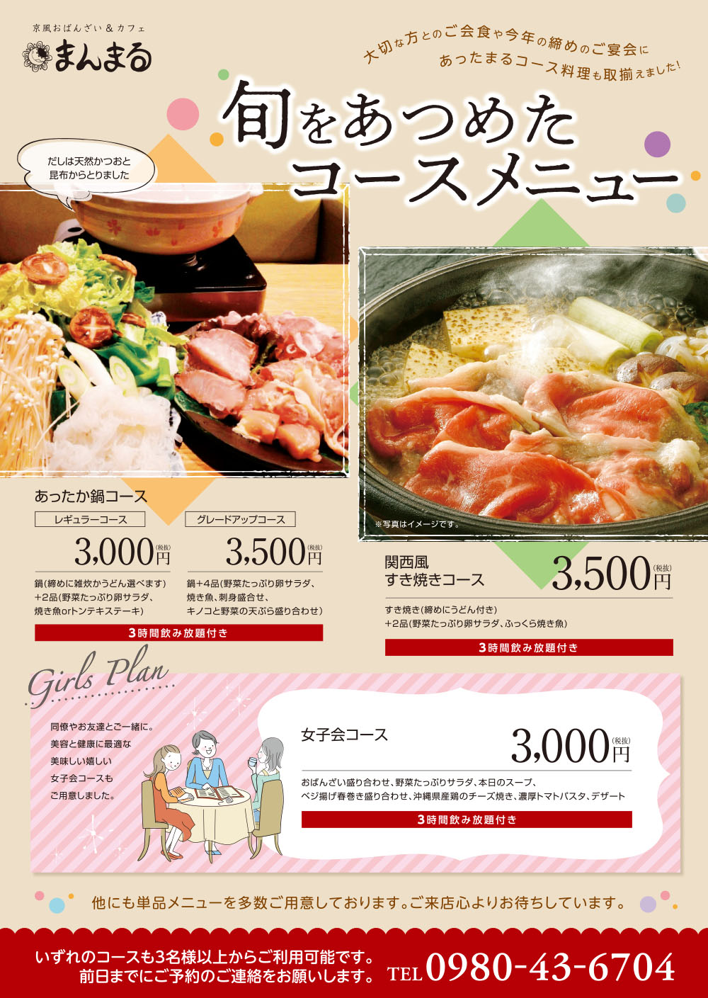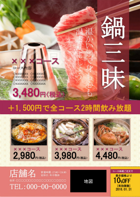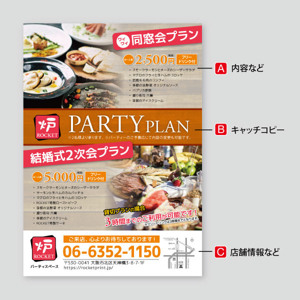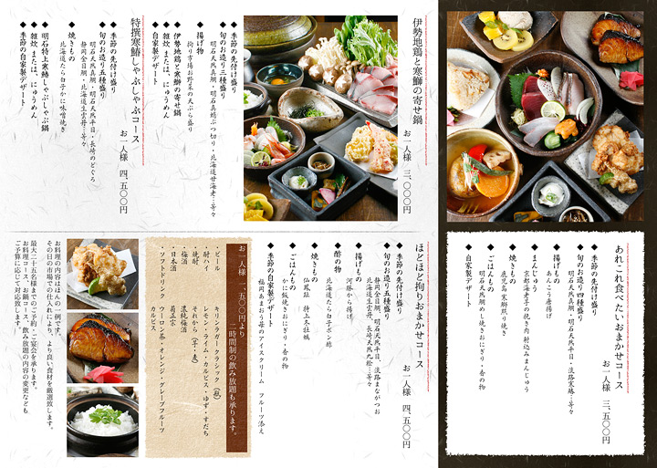 飲食店・宴会コースチラシ。