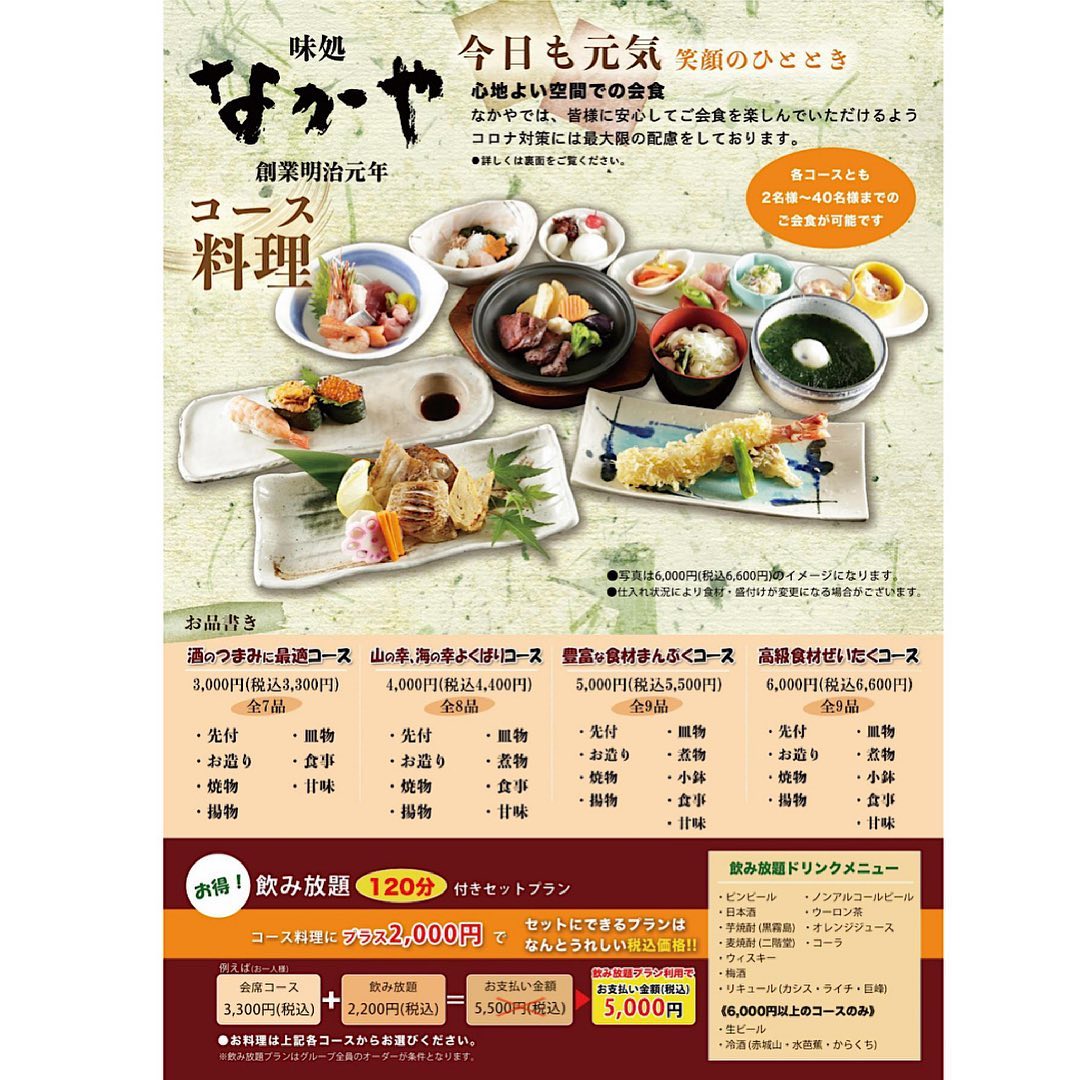 いつもご来店ありがとうございます。-宴会料理のチラシができましたので味処なかや。