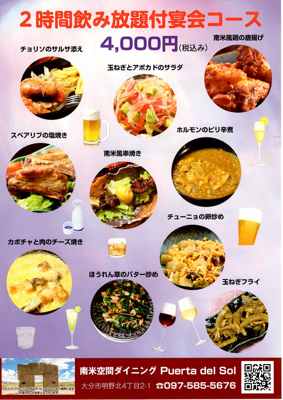 宴会コースのチラシが新たになりました日本でも珍しい本格的アンデス家庭料理専門店。