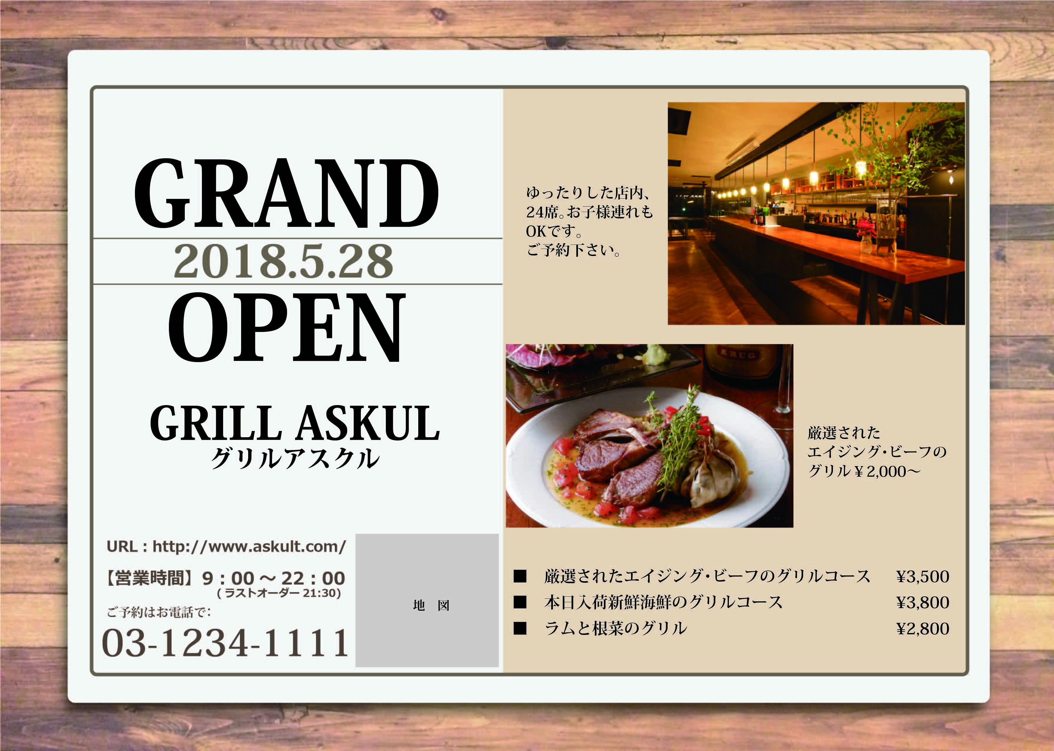 飲食店のチラシ無料テンプレート・デザインサンプルオープン・開店 - ネット印刷グラフィック。