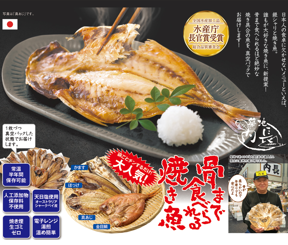 まとめ買いがお得 骨まで食べられる焼き魚「あじ」 - 静岡の老舗製茶問屋 白形傳四郎商店。