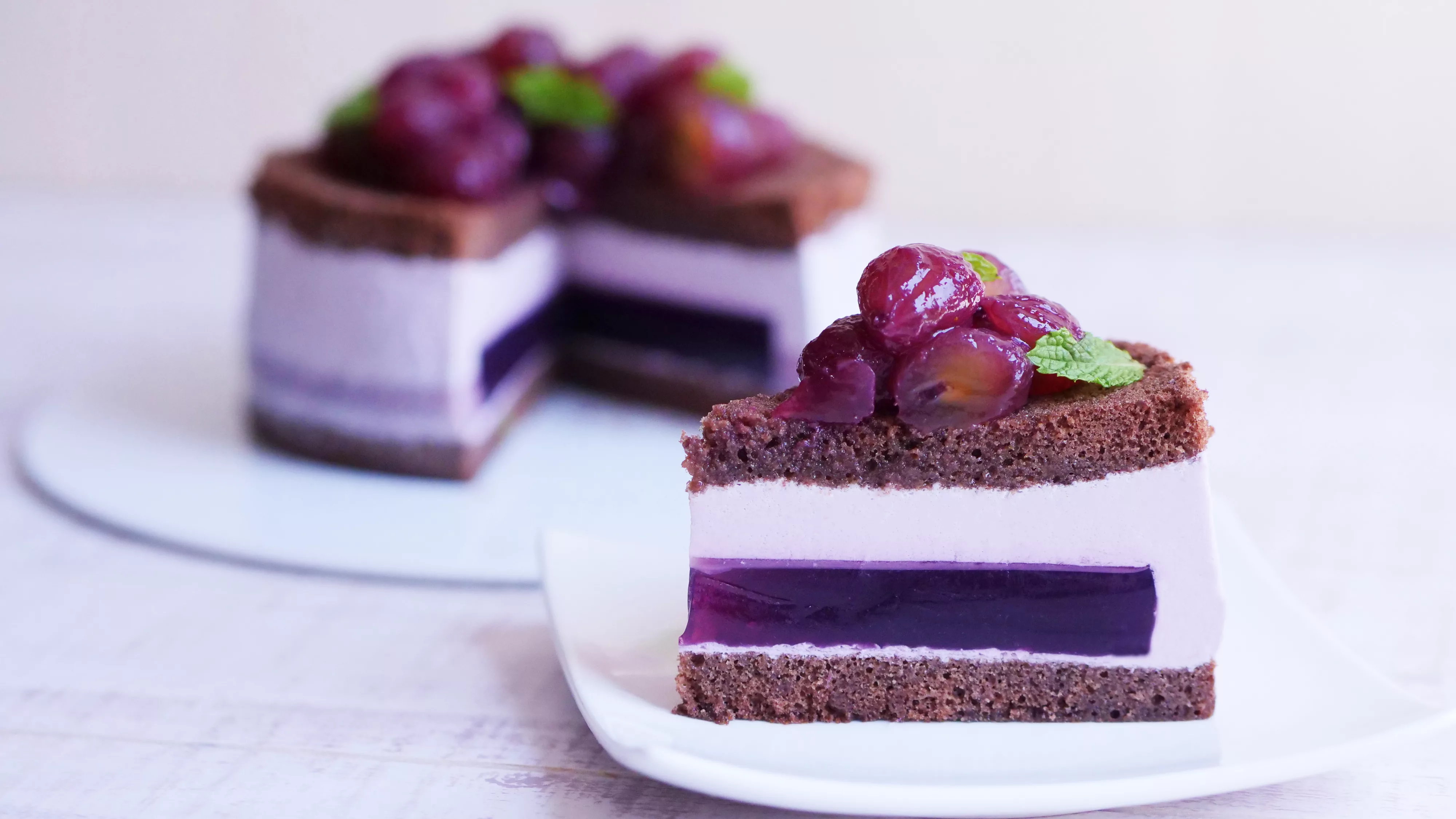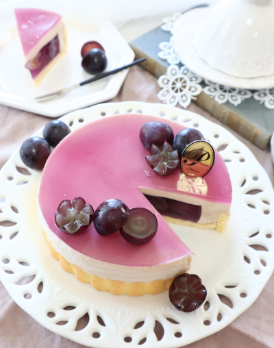 透き通る美しさ!二層仕立てのぶどうチーズケーキ。
