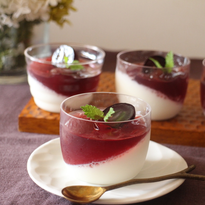 ぶどうゼリーとパンナコッタの2色ゼリーお菓子レシピサイト パニレピ。