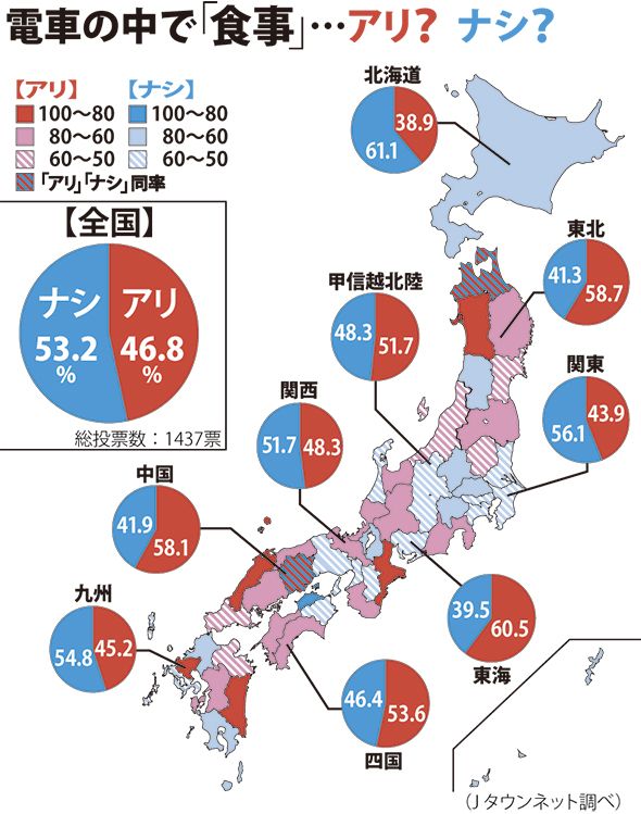 電車内での食事はマナー違反? 都道府県別調査は意外な結果に全文表示 Jタウンネット。