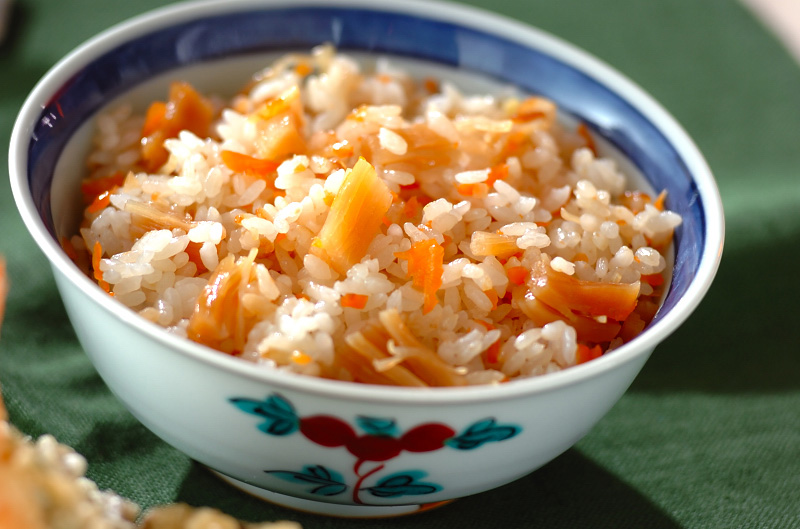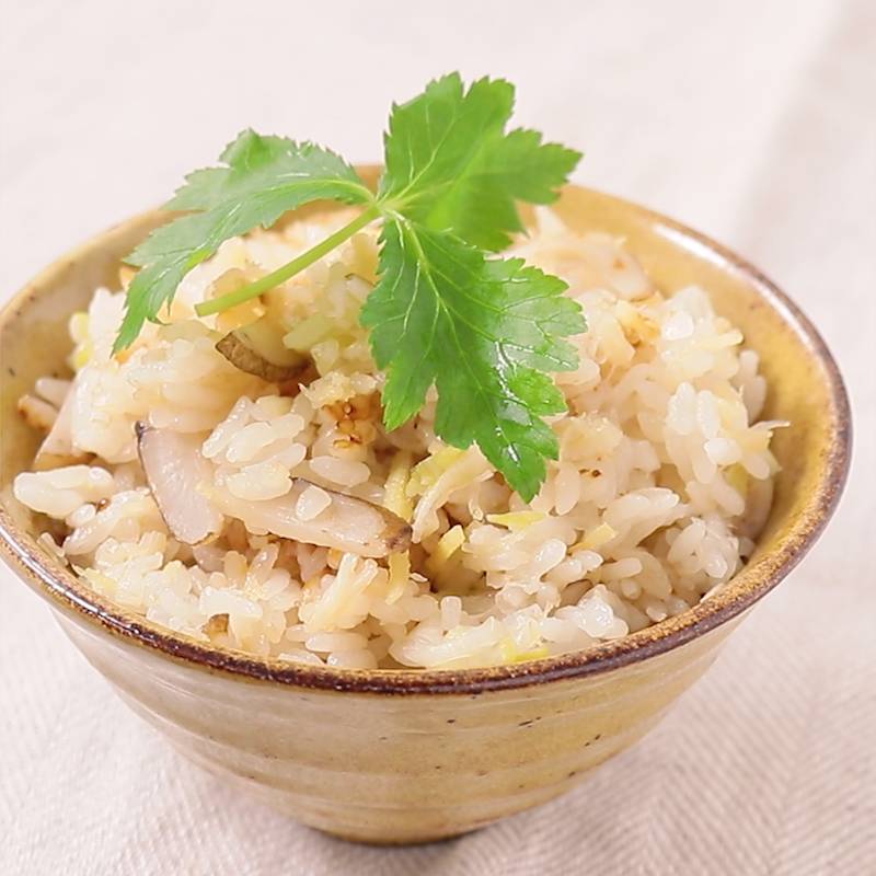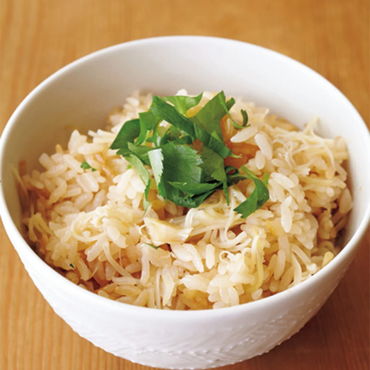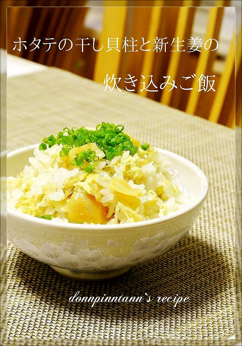 ホタテの干し貝柱と新生姜の炊き込みご飯。