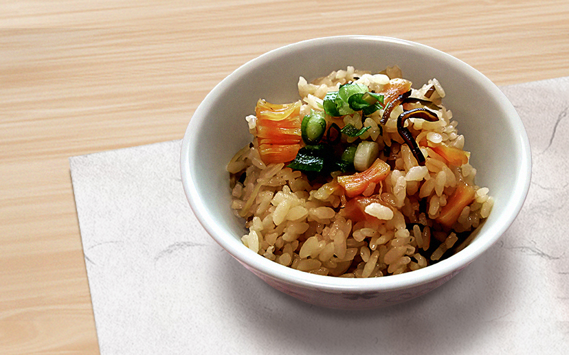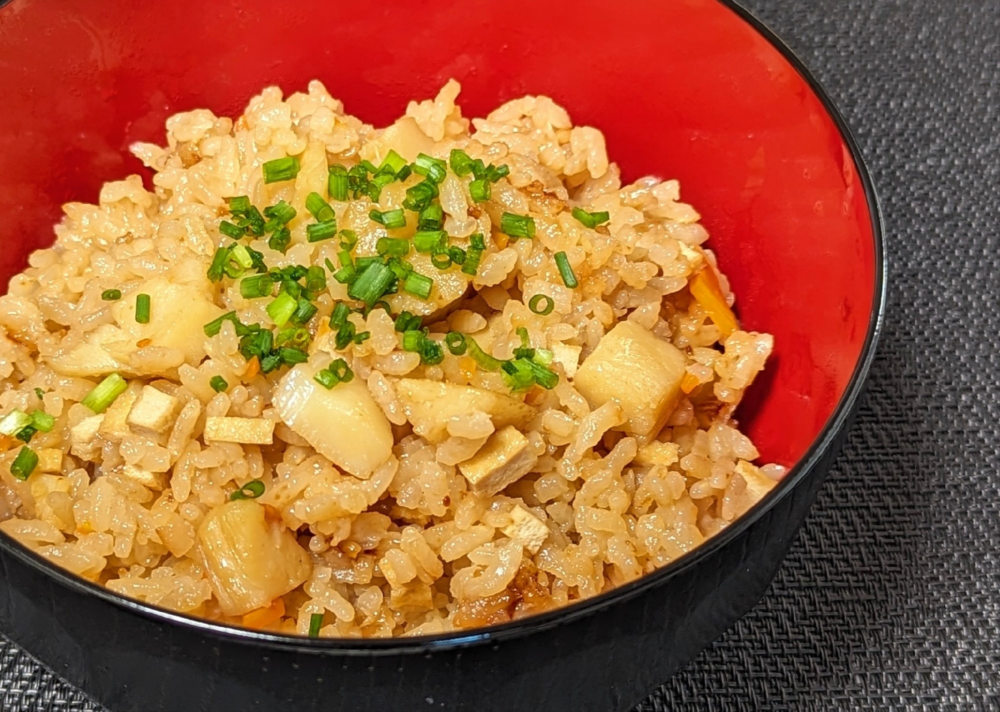 食欲そそる♪ ホタテのしょうが炊き込みご飯。