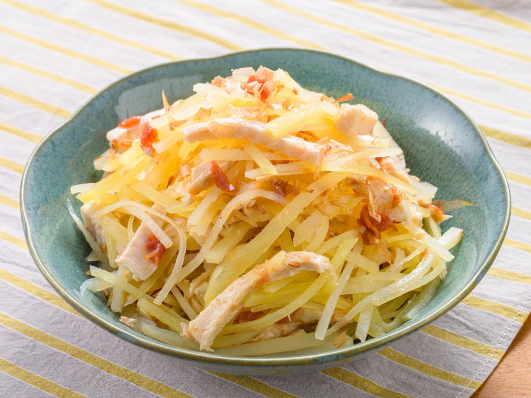 カリホク食感。ほぐし蒸し鶏のポテトガレット。