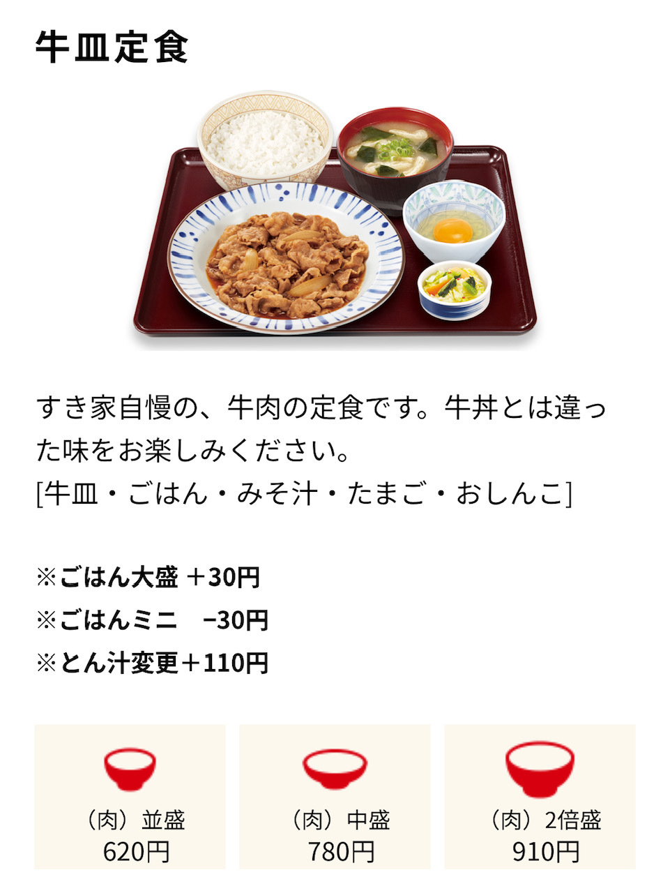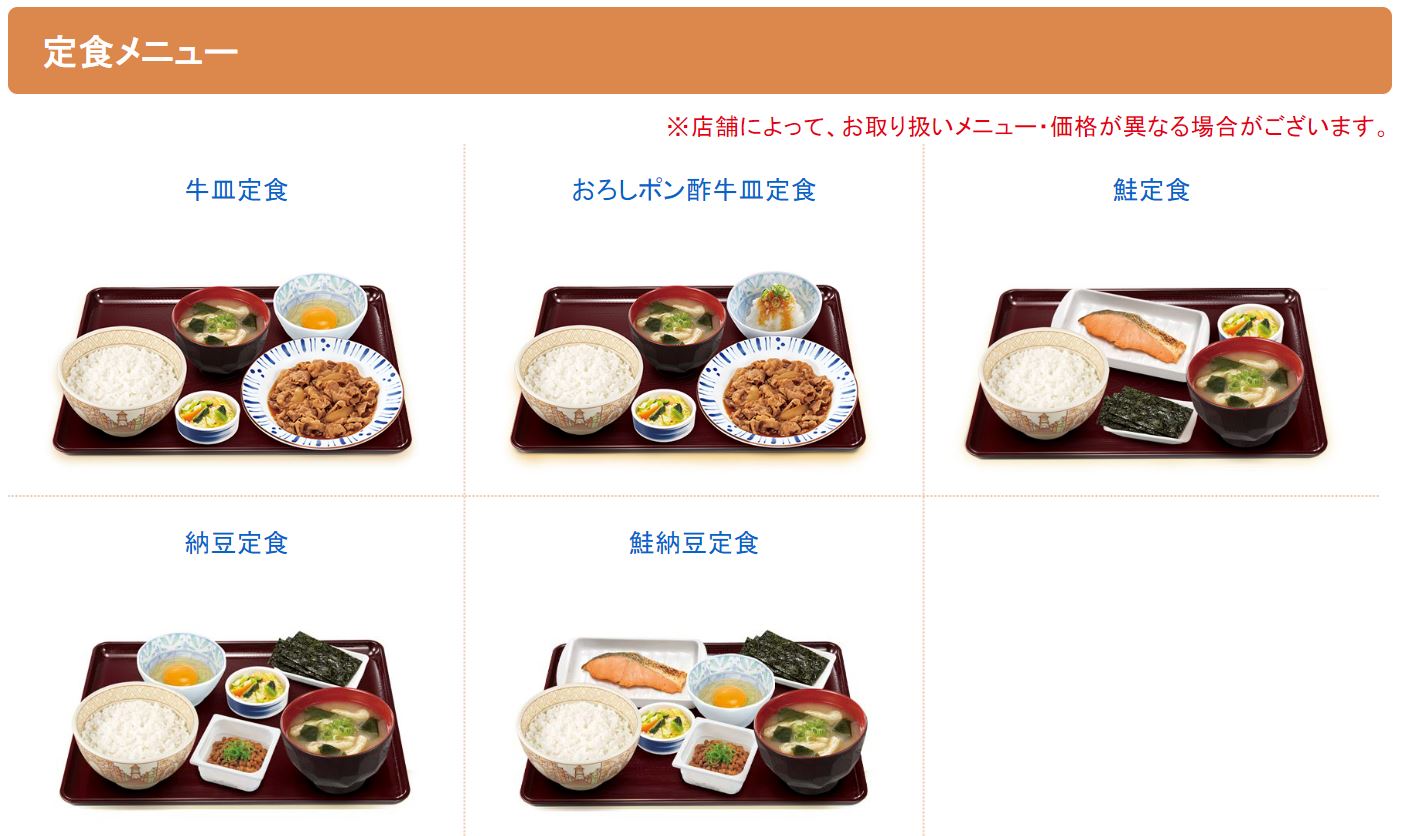 牛皿定食定食ラインナップすき家のメニューすき家。